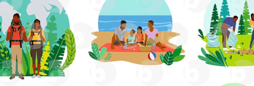 We put a TON of detail into each illustration to provide an amazing, cohesive illustration experience including:Family Enjoying the BeachPark Cleanup IllustrationsBlack People HikingBlack People Fishing and More!Keywords: outdoors, nature, green, rustic, outside, casual, garden.