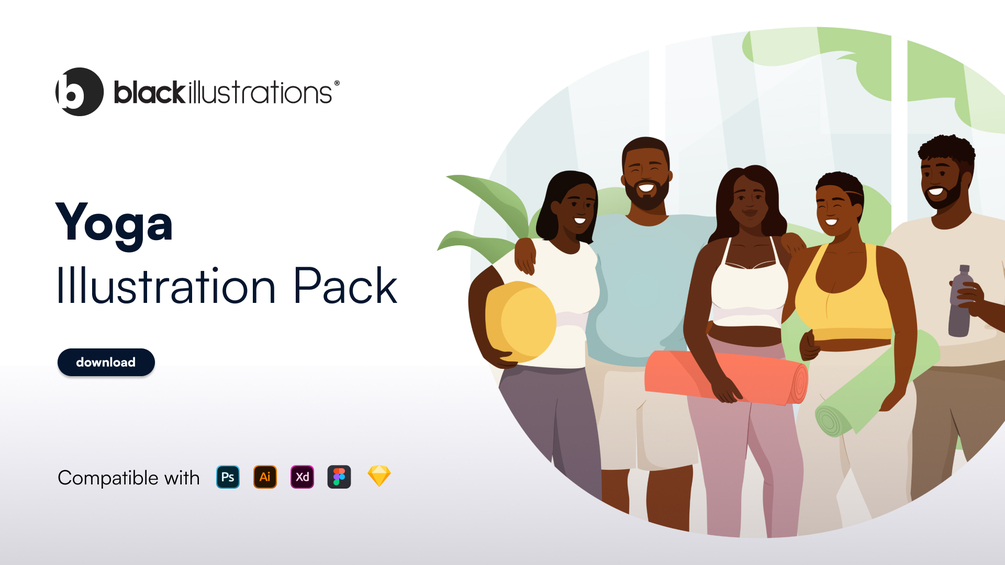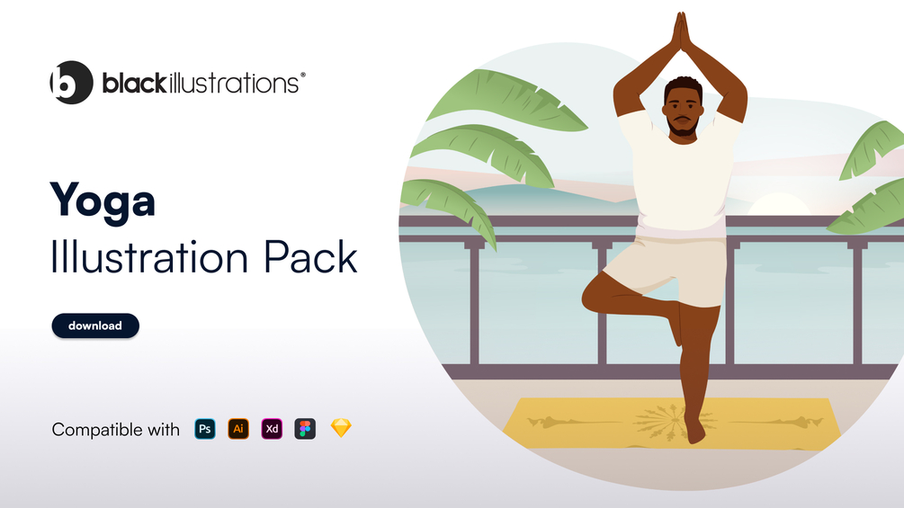 In a world where representation matters, our illustration pack is designed to fill the gap in digital projects by adding diversity and inclusivity, ensuring that Black people are authentically and respectfully represented in the world of yoga and wellness.