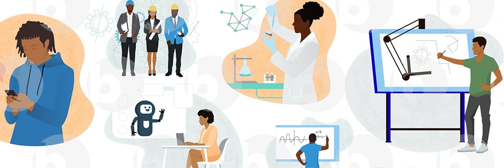 The STEM Illustration pack is an amazing, new illustration pack featuring hi-res images of black people in Science, Tech, Engineering and Mathematics.